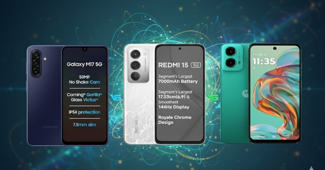 ভারতের স্মার্টফোন বাজারে সাশ্রয়ী মূল্যের ফোনের প্রতিযোগিতা এখন আরও জমে উঠেছে। সম্প্রতি Samsung তাদের নতুন বাজেট ডিভাইস Samsung Galaxy M17 5G লঞ্চ করেছে, যা সরাসরি টক্কর দিচ্ছে Redmi 15 5G এবং Motorola G45 5G-এর মতো জনপ্রিয় মডেলগুলিকে।